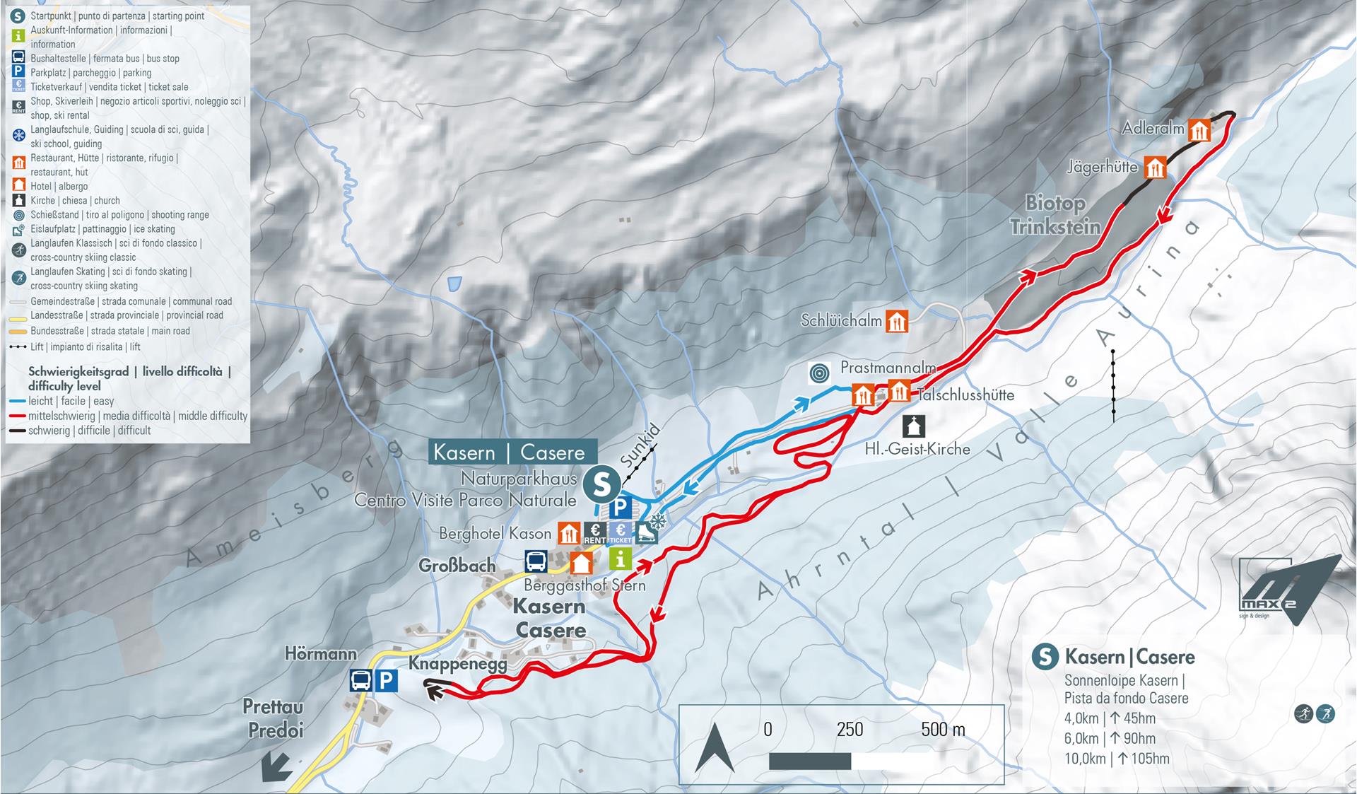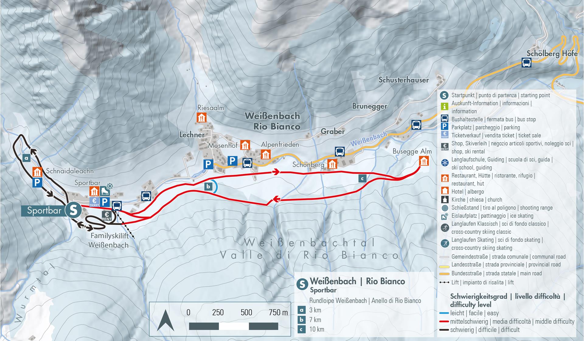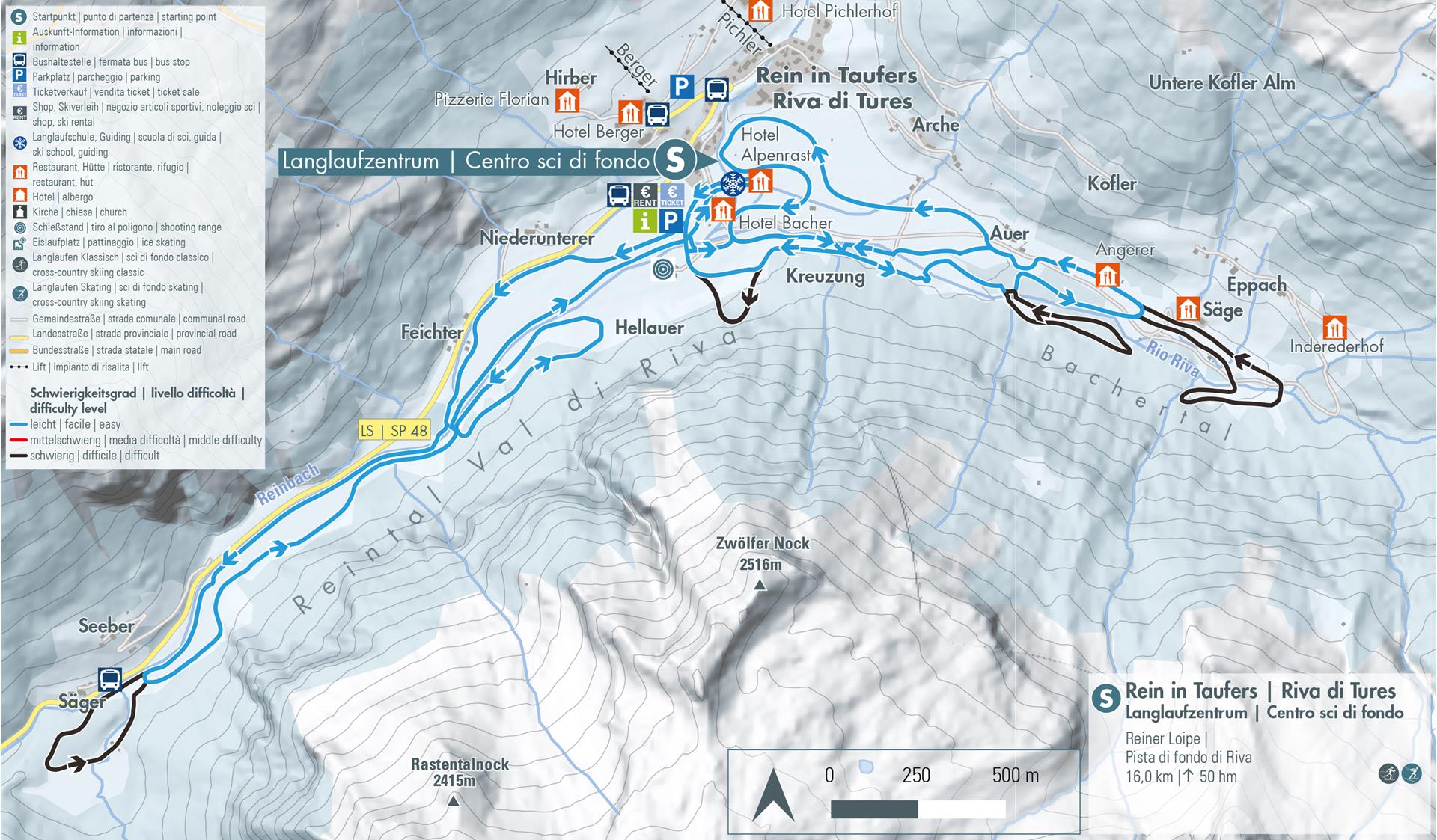 - Im Höhendorf Rein in Taufers auf 1600 m werden 4 verschiedene Spuren von 3 bis 15 km in unterschiedlichen Schwierigkeitsgraden gepflegt, mitten auf weitläufigen Langlauf-Fluren steht das neue Biathlon-Trainingszentrum.