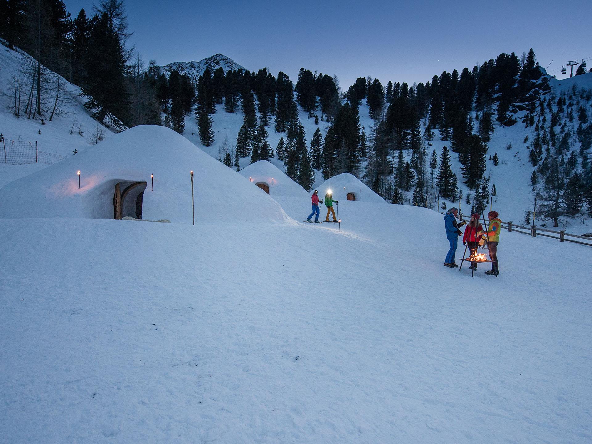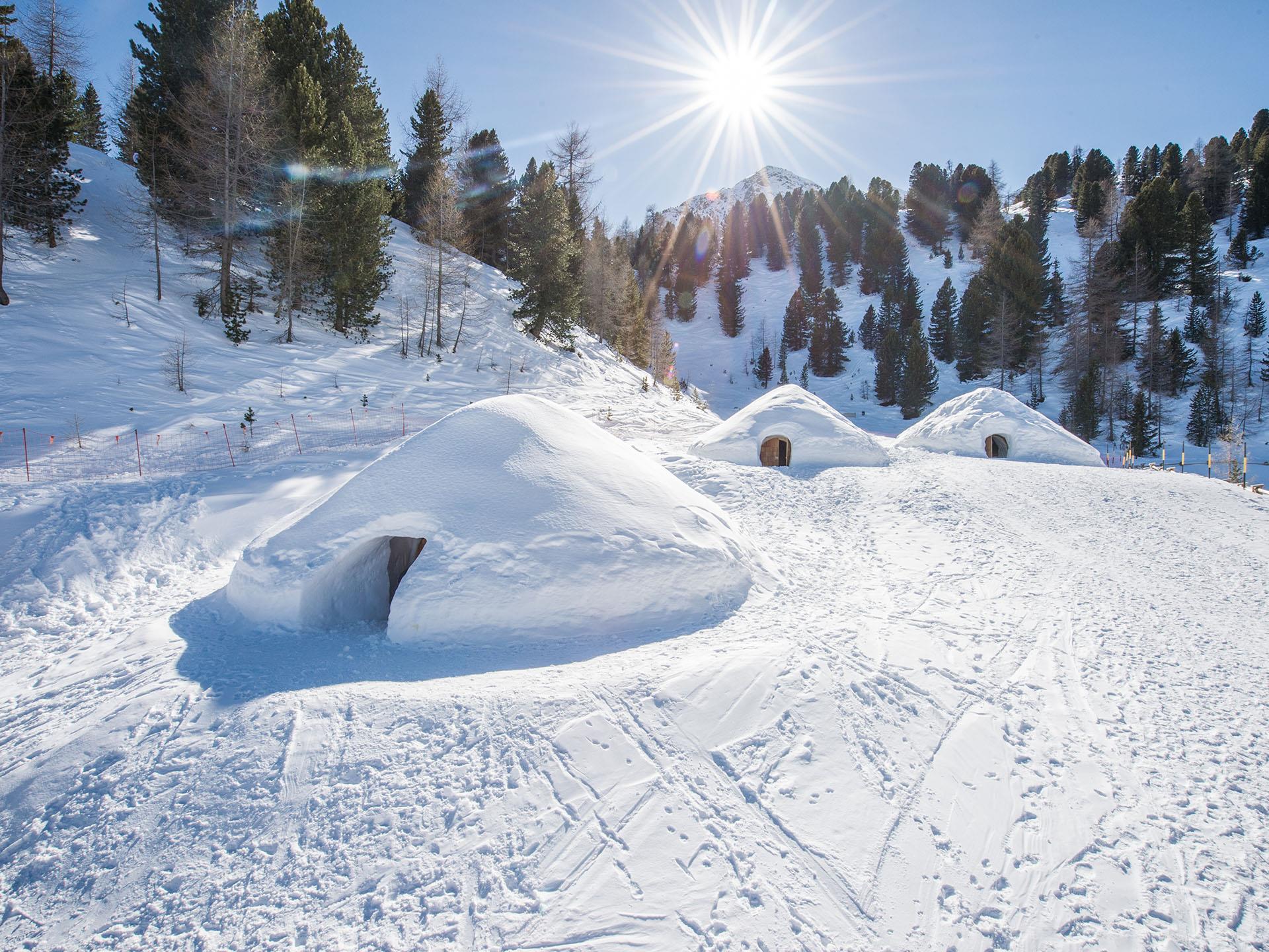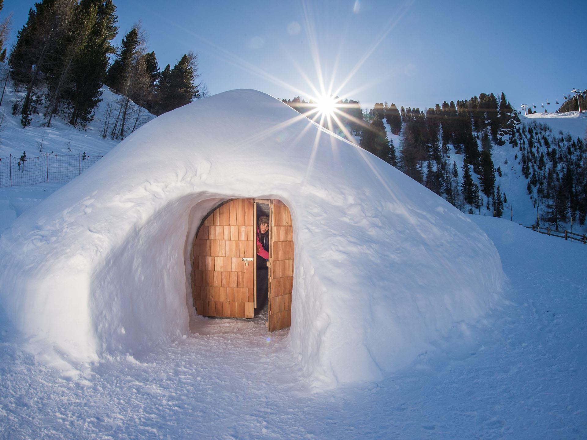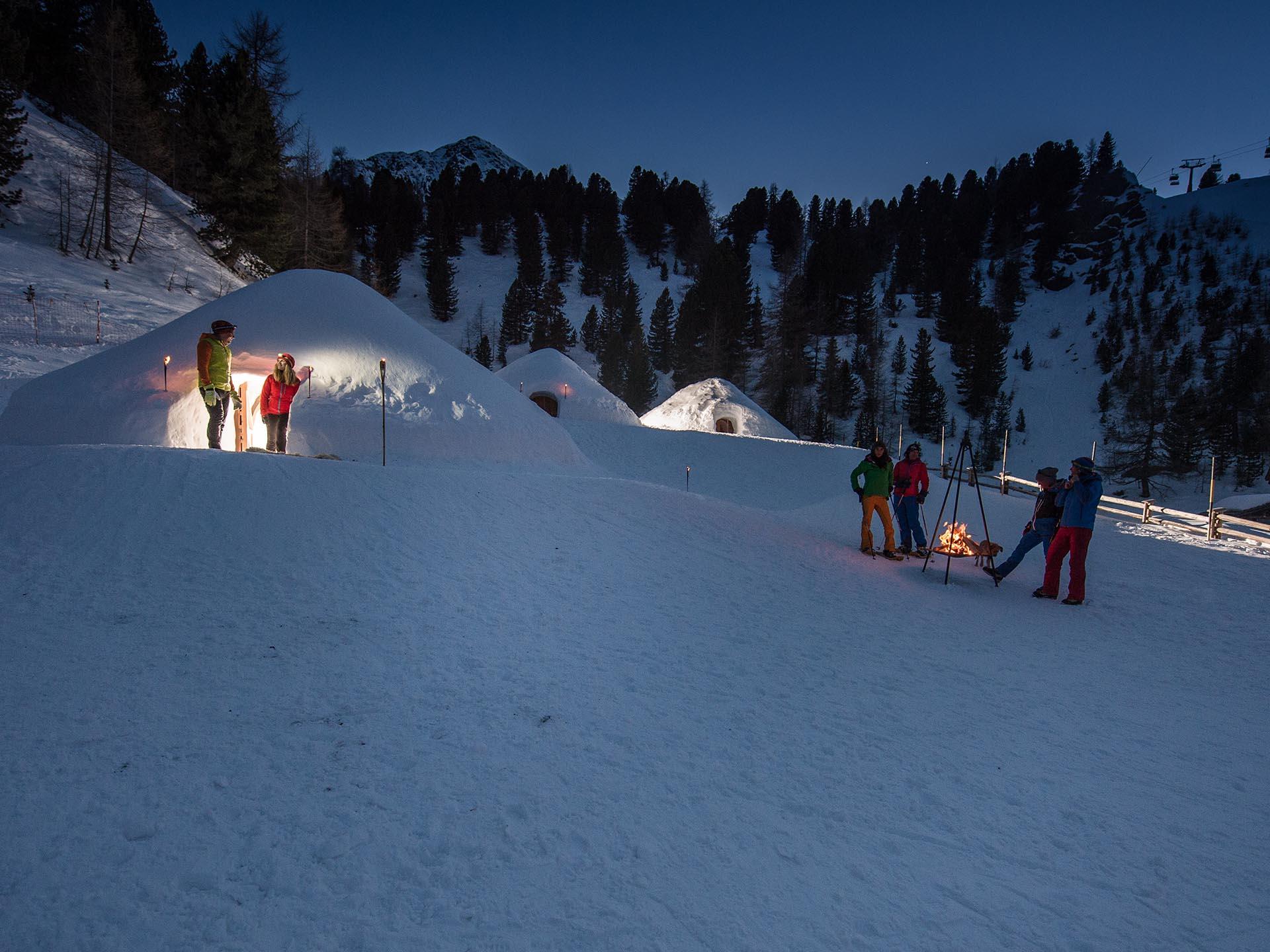 Inside your private palace, artistically sculpted from snow, you will sleep on high-quality insulating mats in professional expedition-grade sleeping bags that defy even arctic temperatures. But before you retreat into the warmth of your igloo, an evening full of highlights awaits: enjoy a traditional dinner in the convivial atmosphere of the mountain hut and later relax in the steaming outdoor whirlpool or the sauna under the crystal-clear starry sky of the Alps.