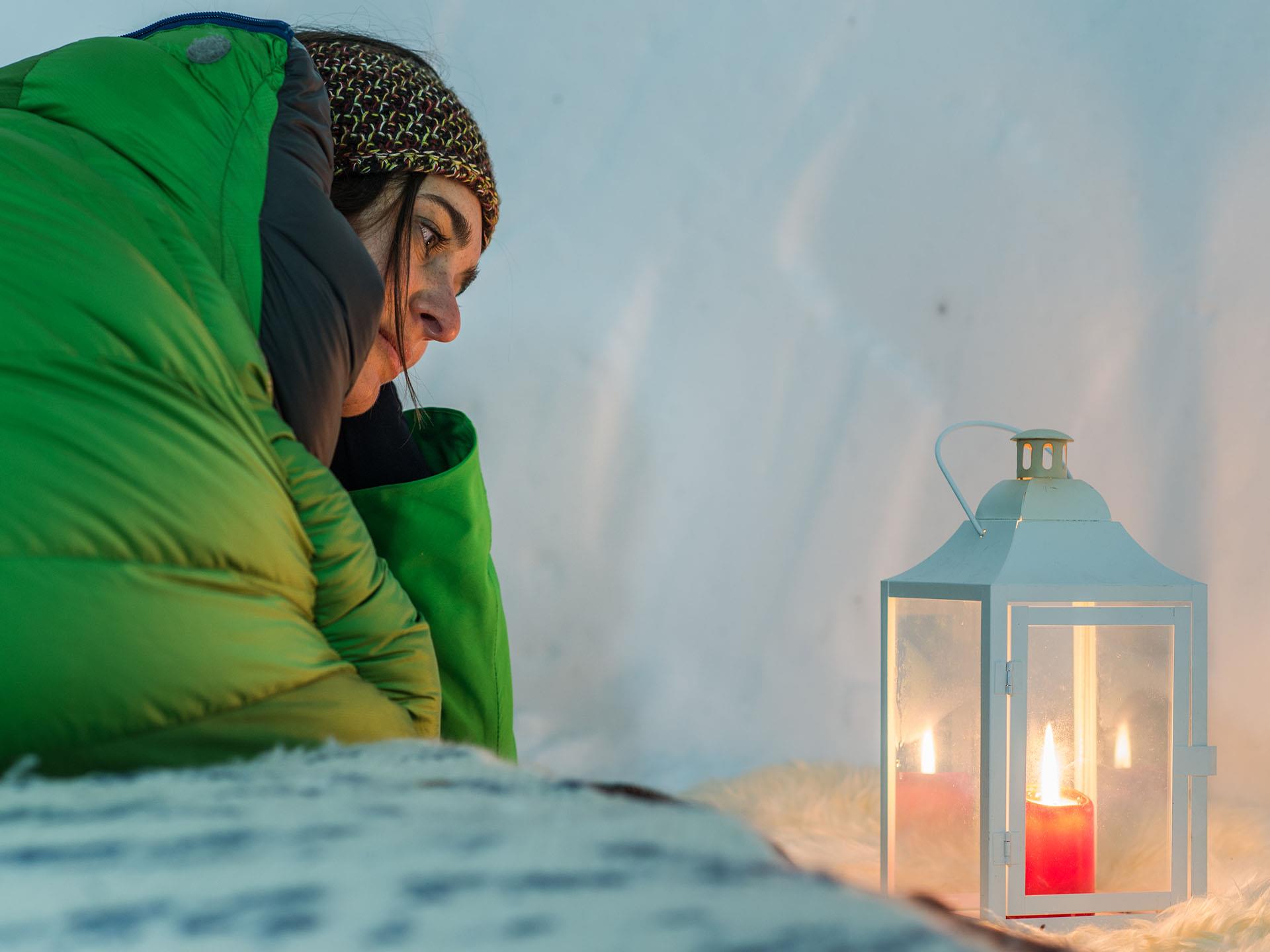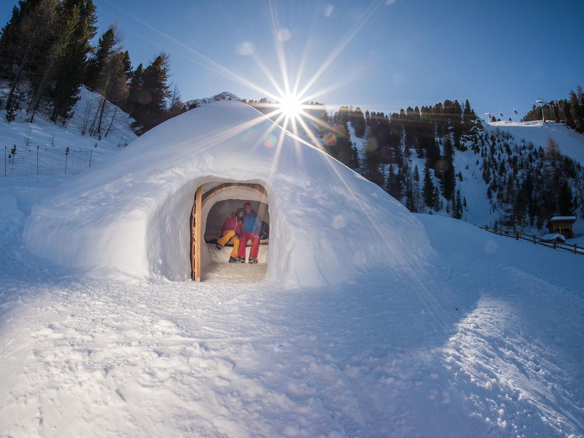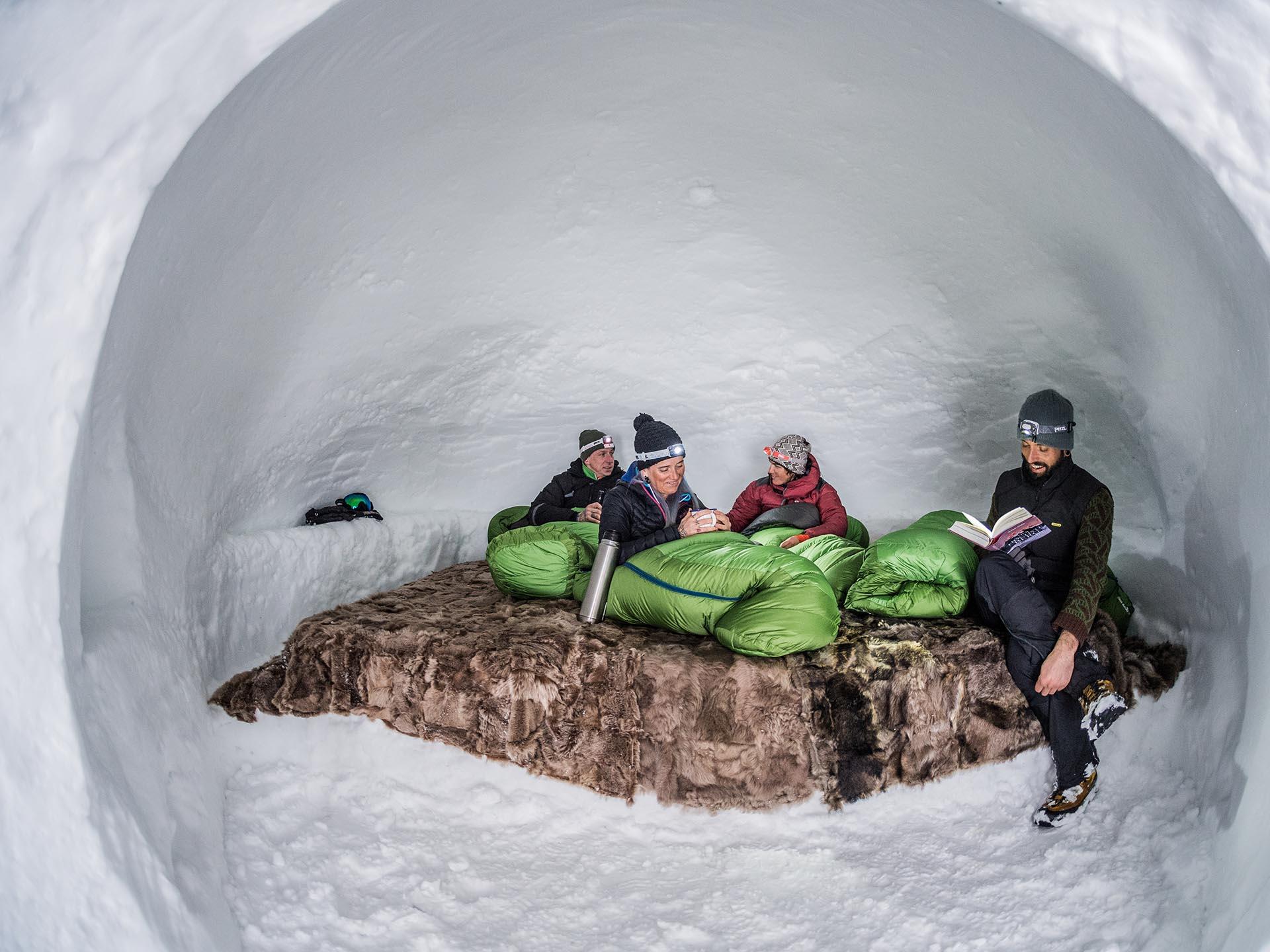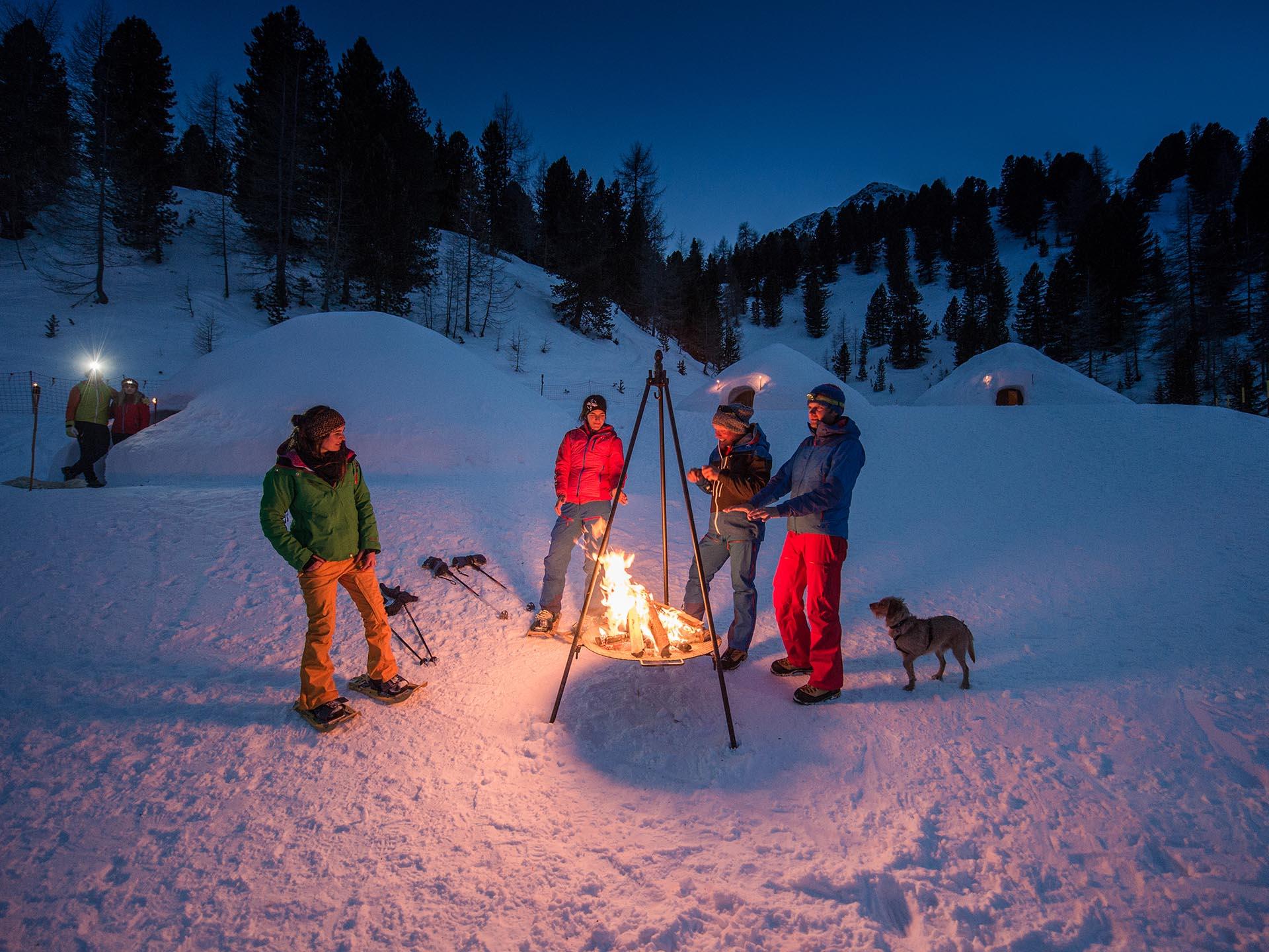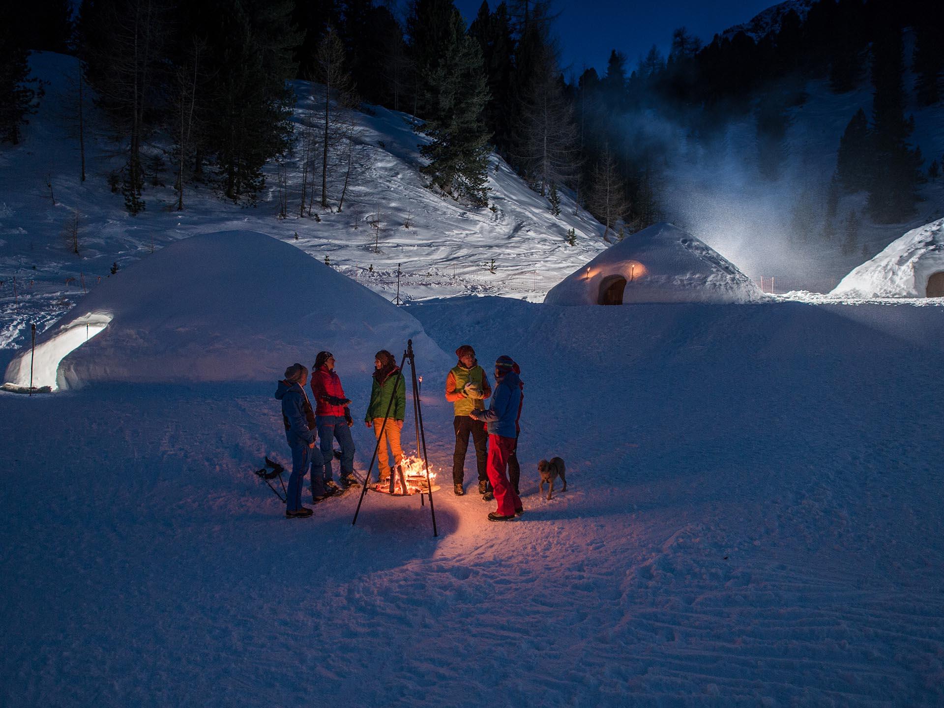Inside your private palace, artistically sculpted from snow, you will sleep on high-quality insulating mats in professional expedition-grade sleeping bags that defy even arctic temperatures. But before you retreat into the warmth of your igloo, an evening full of highlights awaits: enjoy a traditional dinner in the convivial atmosphere of the mountain hut and later relax in the steaming outdoor whirlpool or the sauna under the crystal-clear starry sky of the Alps.